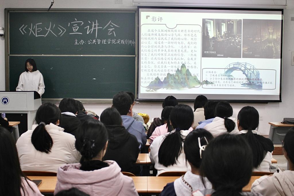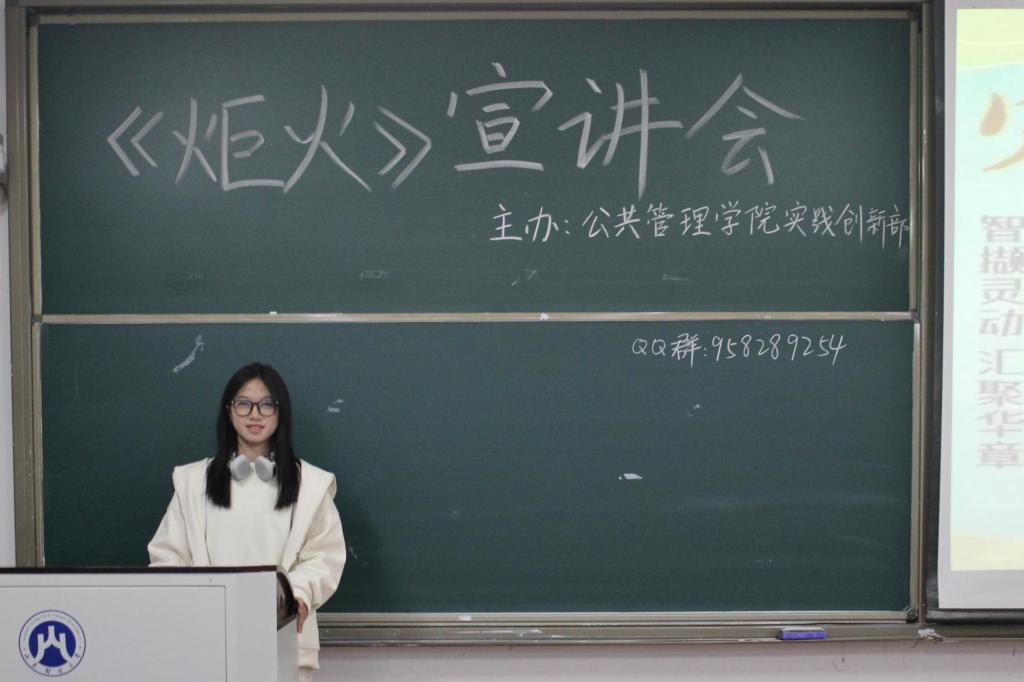 炬火在黑暗中照亮前行的道路,象征着知识与智慧的传递。实践创新部的成员们详细讲解了“炬火”的内涵,他们对《炬火》各个板块的设立意义、征稿内容、征稿要求等逐一加以说明:“轩灵”板块探讨心灵成长,“睿论”板块展现哲学智慧,“观澜”板块记录生活点滴,“沧笙”板块尽显创意才华……此外,在宣讲过程中实践创新部的成员还分享了自己的投稿经验和心得。