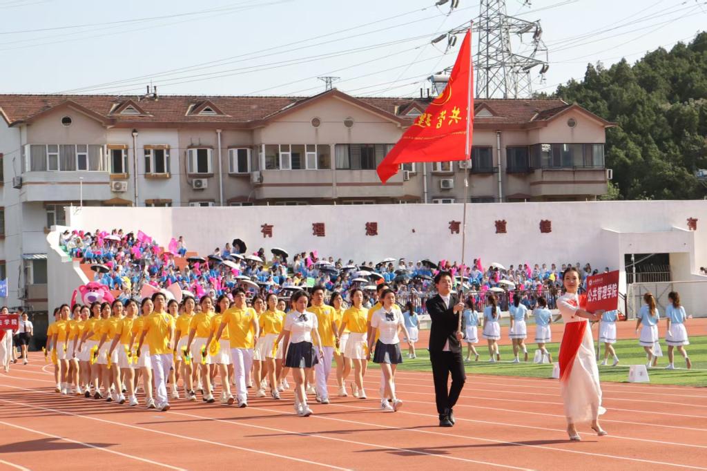 猎猎院旗卷起磅礴气势。伴随着激昂的运动员进行曲,公共管理学院方阵迈着整齐划一、铿锵有力的步伐入场。他们气宇轩昂,眼神坚定,“大道为公、善治天下”院训口号响彻云霄,尽显新时代公管学子胸怀天下的使命担当与朝气蓬勃的青春豪情,成为开幕式上一道亮丽的风景线。